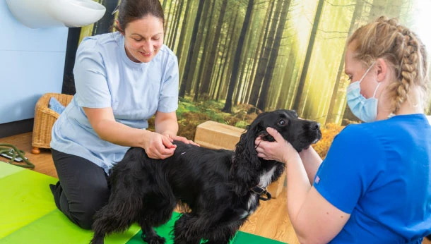 As part of our holistic approach to your pets’ health, Blue House offer Western Acupuncture alongside conventional medicine to treat your pets’ painful conditions in our relaxing Woodland Room. At Blue House we have a dedicated "Woodland Room" for the administration of acupuncture treatments. This is a quiet, tranquil forest themed space to encourage our patients to settle during their treatments. We tend to sit on the floor to allow them to relax (chairs are provided!).